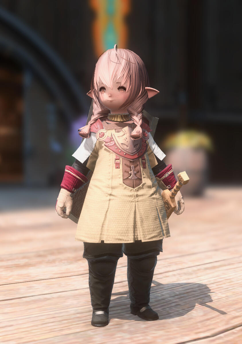 A nervous-looking new adventurer fresh from Ul'dah. While shy and a bit skittish, she's earnestly trying her best to become a gladiator who can protect others, especially after being blessed with the Echo. However, she is struggling to live up to the responsibilities and expectations of her gift.